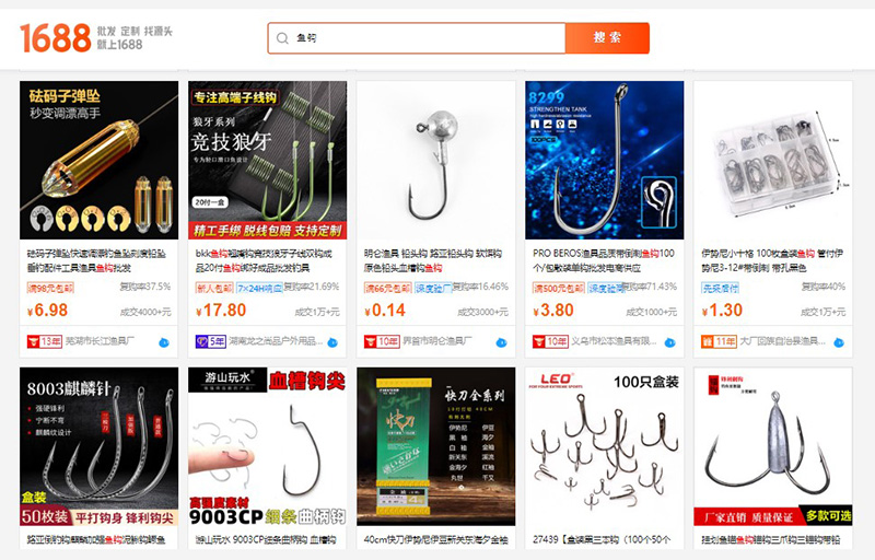 1688.com là trang TMĐT nội địa Trung được dân buôn chủ yếu tìm đến để nhập hàng kinh doanh. Các sản phẩm bán trên 1688, trong đó có lưỡi câu cá có chủng loại cực phong phú, mẫu mã đa dạng và giá thành rẻ hơn rất nhiều so với Taobao, Tmall.