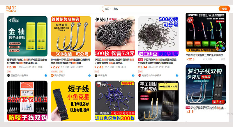Nguồn cung lưỡi câu cá sỉ, lẻ trên Taobao